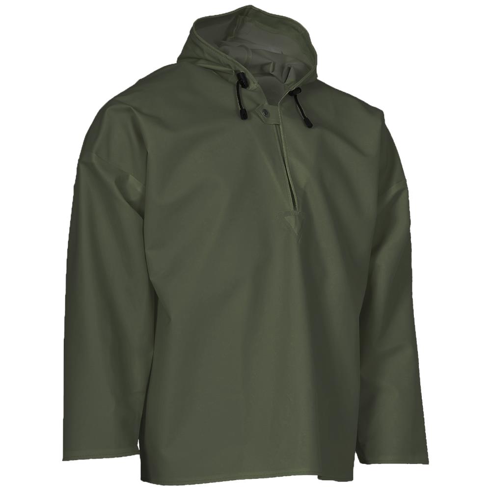 Busseronne med hætte og smøretræk. Trykknap i hals. Fiskeolie-resistent og kundebestandig. Fås i flere størrelser.
