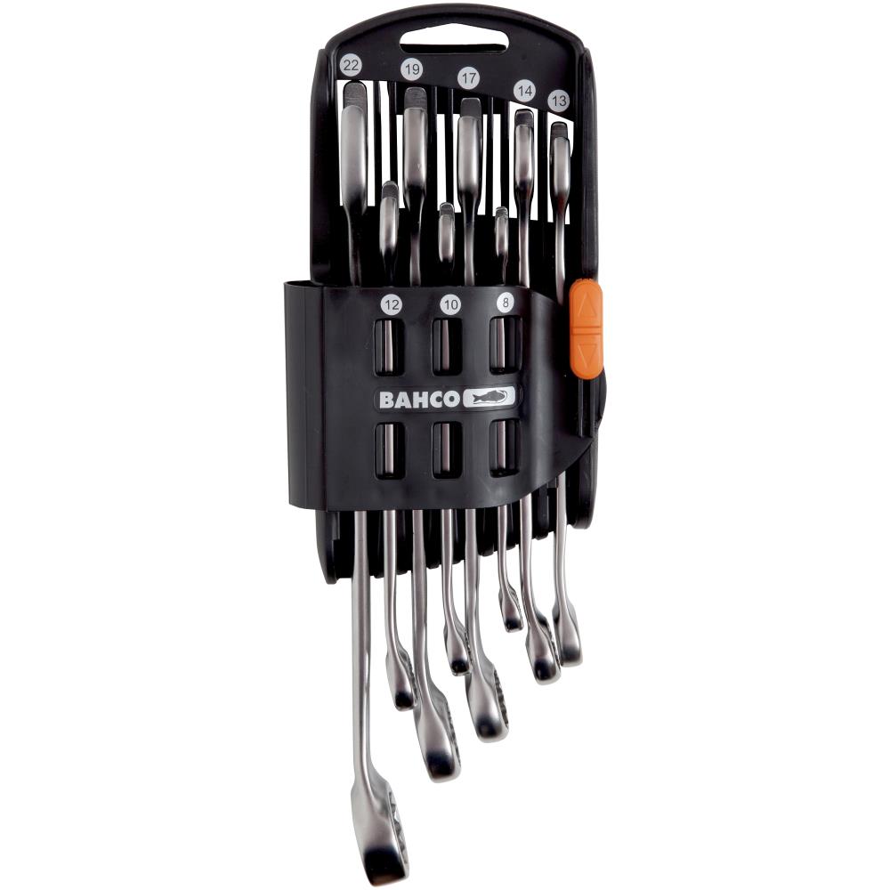 Ring-gafelnøglesæt. Leveres i praktisk plastholder.