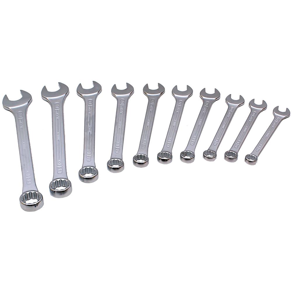 Ringgaffelnøgle-sæt 10 dele, str. 8 / 10 / 11 / 12 / 13 / 14 / 15 / 17 / 19 / 22 mm. ISO 1711 / 3318 / 691 (DIN 899 / 3113).