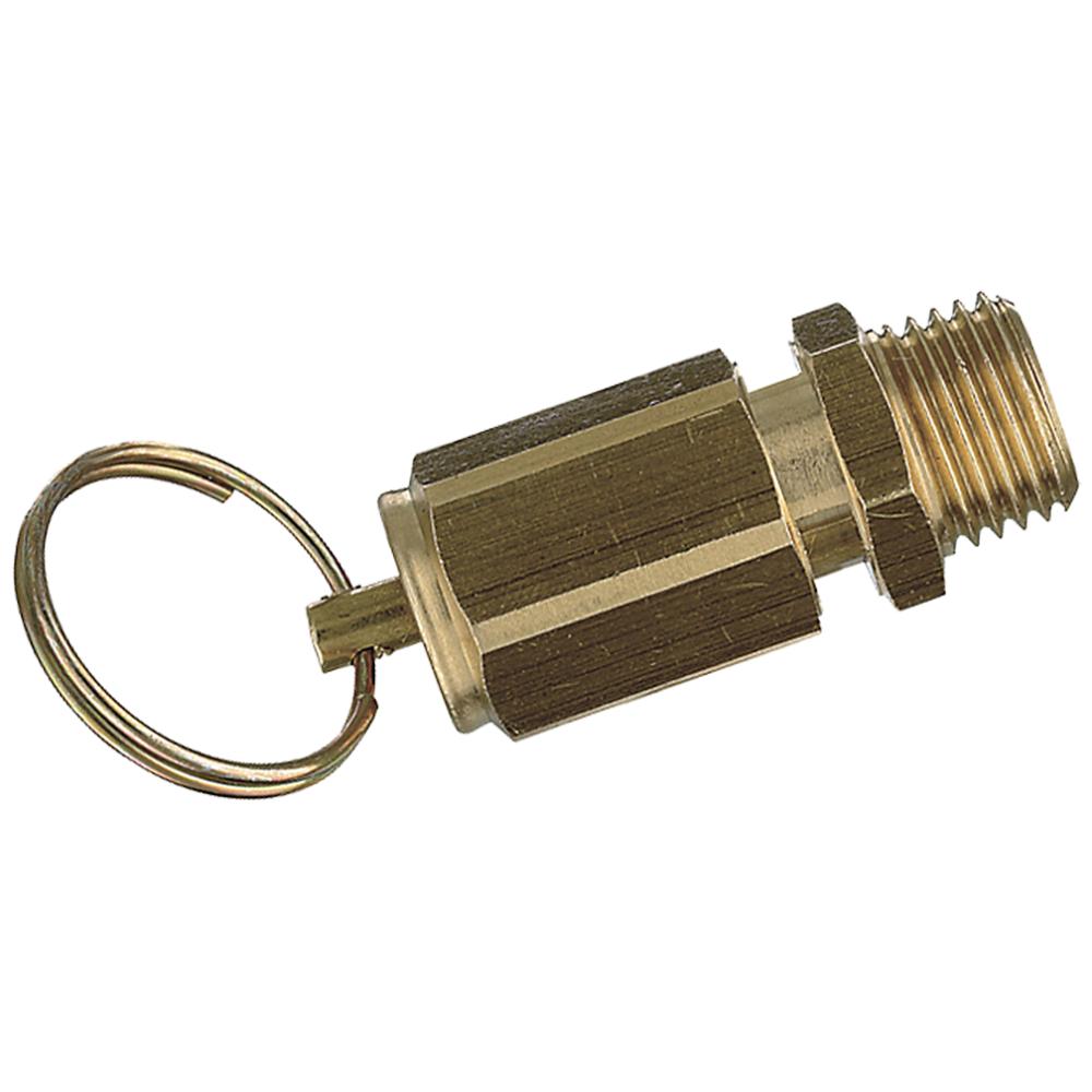 Messing-sikkerhedsventil med udvendig gevind. Fås i flere varianter.