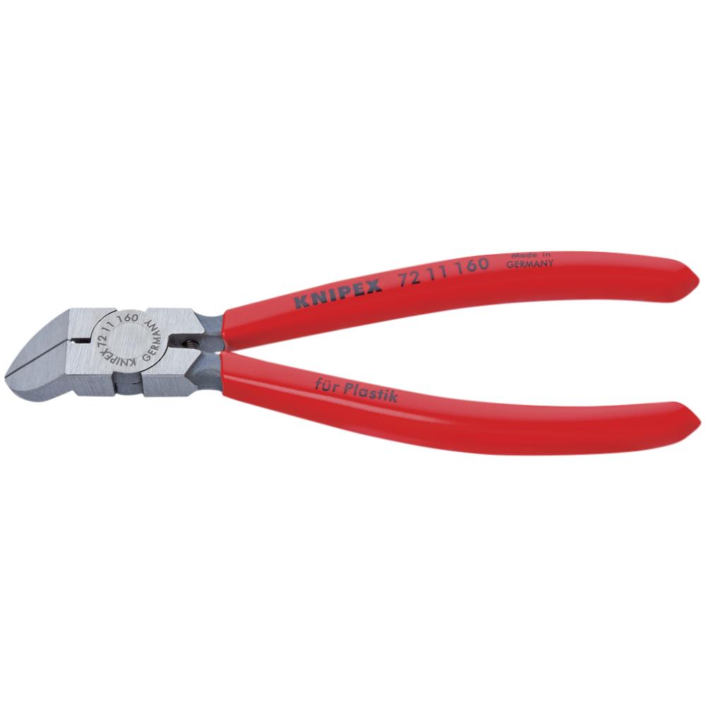 Med planslebne skærflader. Til plan afskæring af sprøjtestøbte plastdele og støberester. Klipper nemt materiale som bly, uden grater. Med åbningsfjeder. Vanadium- elektrostål- smedet, oliehærdet.