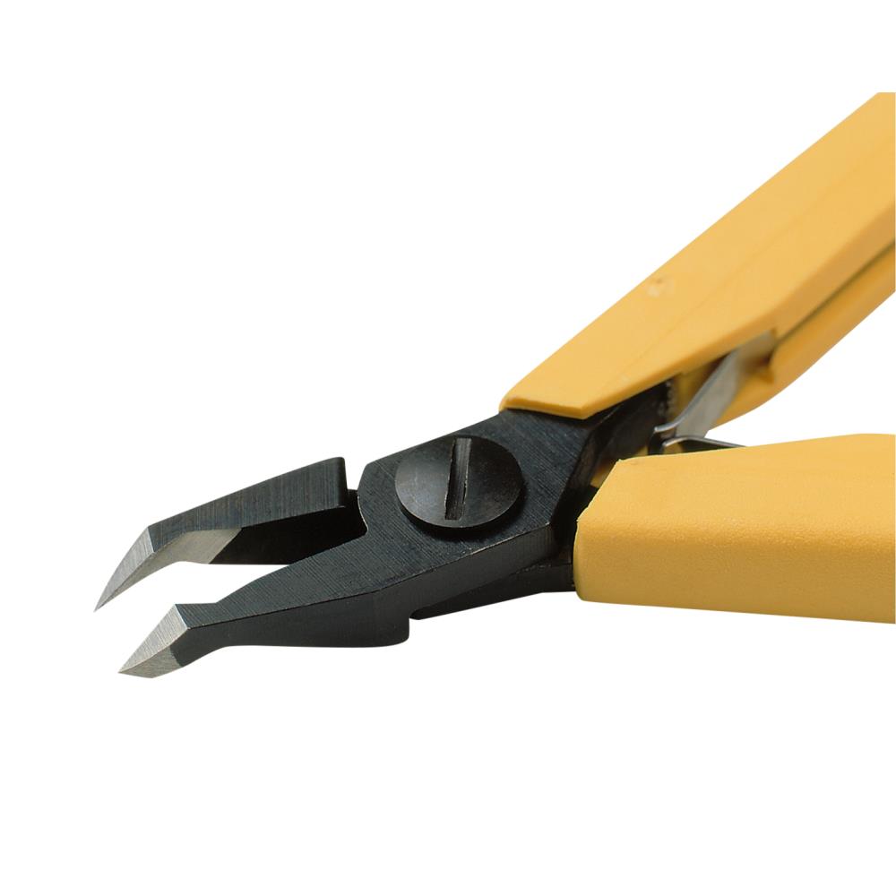Materiale: Højtlegeret stål. Sort finish som beskytter mod reflekser fra arbejdsbelysning. Numerisk styret slibeproces sikrer nøjagtige og ensartede kæber med stor styrke og lang levetid. Præcisions hærdede skæreægge til hårdhed 63-65 HRC. Justerbar centerbolt. ESD sikker håndtag i syntetisk materiale, forsynet med returfjeder. Særligt velegnet for demonterings- og reparationsopgaver, samt ved monteringsopgaver, hvor pladsen er trang. Klippekapaciteten er angivet for kobbertråd. Er forsynet med standard håndtag i conduktivt materiale.