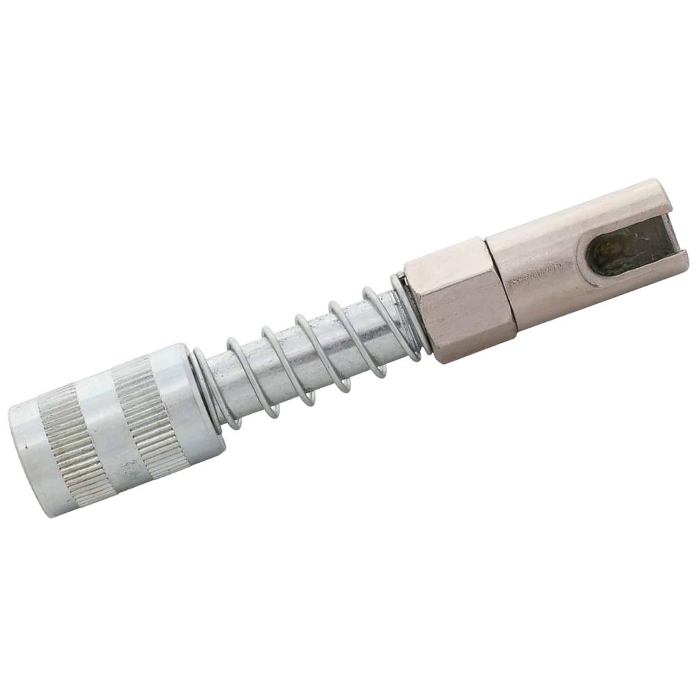 Skubbemodel smørehoved for H-nipler og lynkobling. Designet til retvinklet smøring: smørehovedet skydes/skubbes ind over hovedet på smøreniplen. Meget anvendelig til at smøring hvor der er begrænset adgang eller ved lave højder, hvor en fedtsprøjte med almindelig kobling er svær at bruge. For brug på alle typer H-snørenipler. Monteret med lynkobling for hurtig af- og påsætning. ø14,7 mm. DIN 71412.