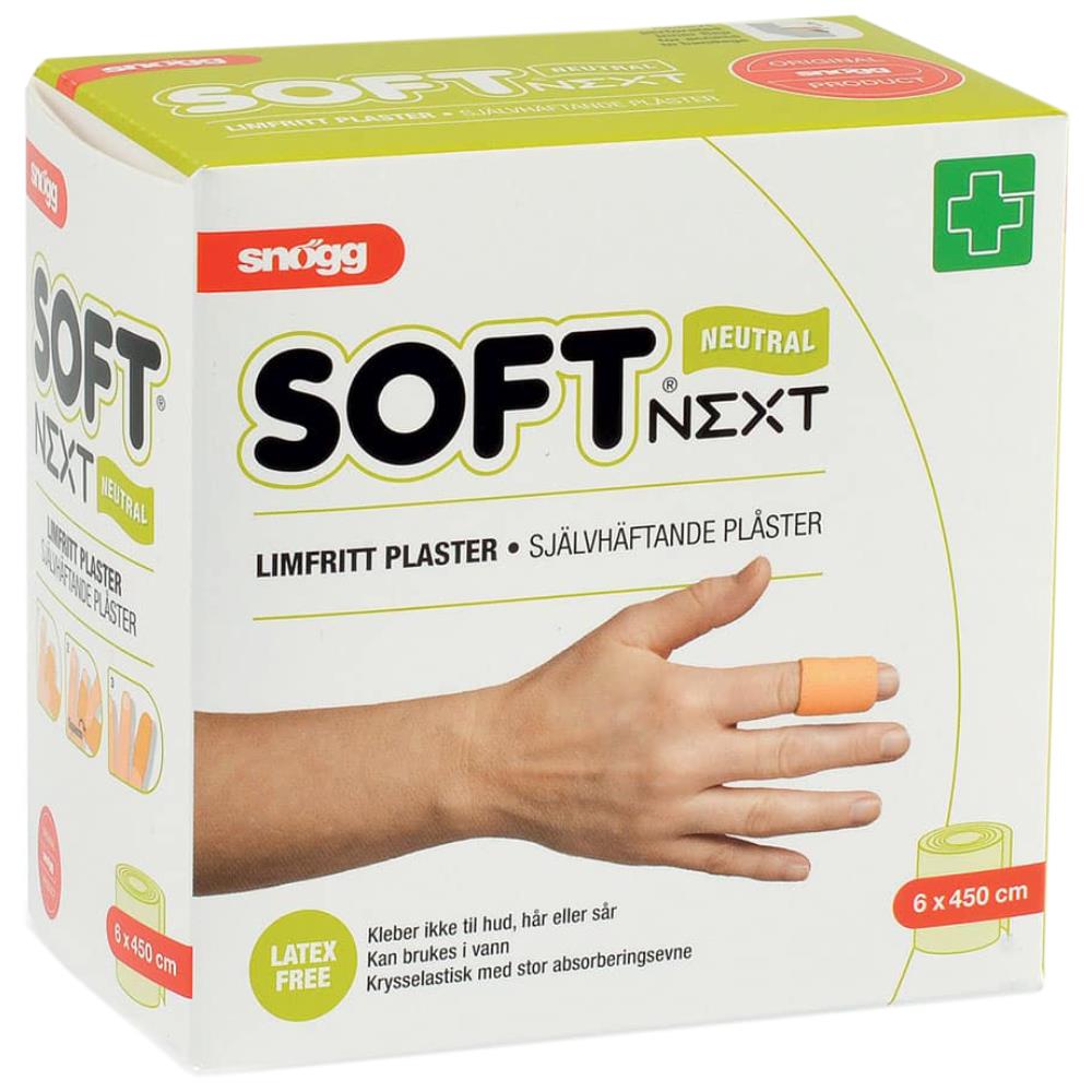 Soft 1 beige, latexfrit og limfrit plaster med blodabsorberende og tværelastiske egenskaber, som giver stor bevægelighed over led. Det hudvenlige plaster gror ikke fast i hud, sår eller hår, selvom overfladen er våd. Rulle 6 cm × 4,5 mtr. Plasteret er særligt velegnet til mindre skader.