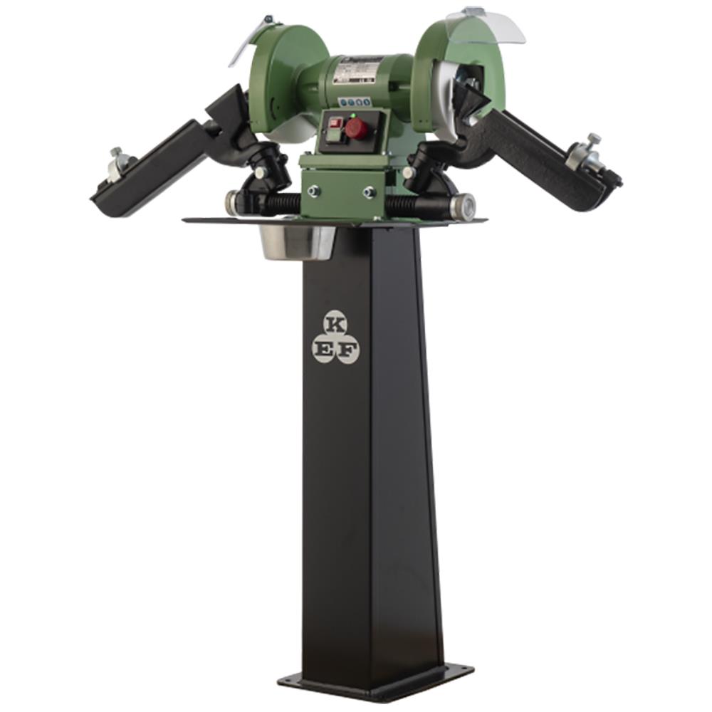 Slibette spiralborslibemaskine 8N EX16 til slibning af spidsvinkel 116-118° og friskærsvinkel 6-8°. Søjlemodel med bord og vandkop. 3×400 V – 50 Hz. 830 W motor med 3.000 omdr./min. Borslibearm A 6-30 mm og B 30-45 mm med afretterdiamant.