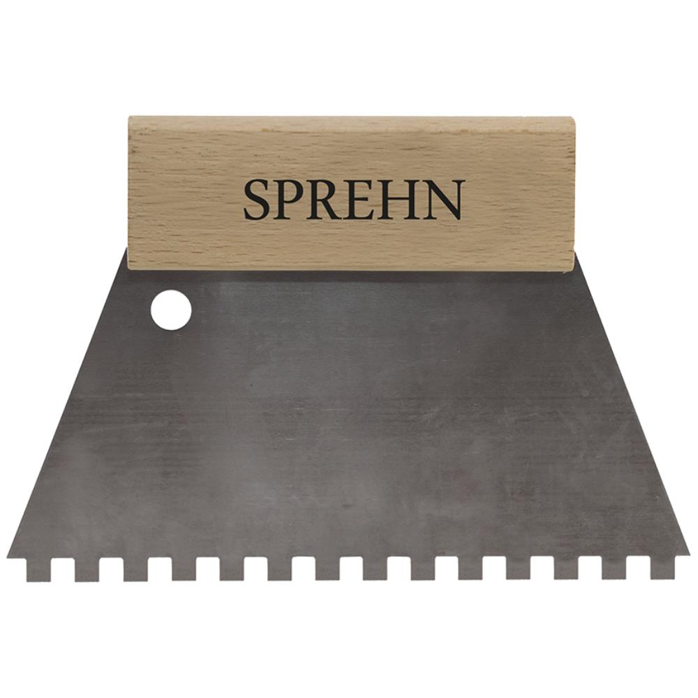 Enkel og praktisk tandspartel til brug ved påføring af bl.a. fliseklæb, inden opsætning af fliser, mosaik m.m. Udført i specialhærdet stål med firkantede tænder på 1 side og træhåndtag.