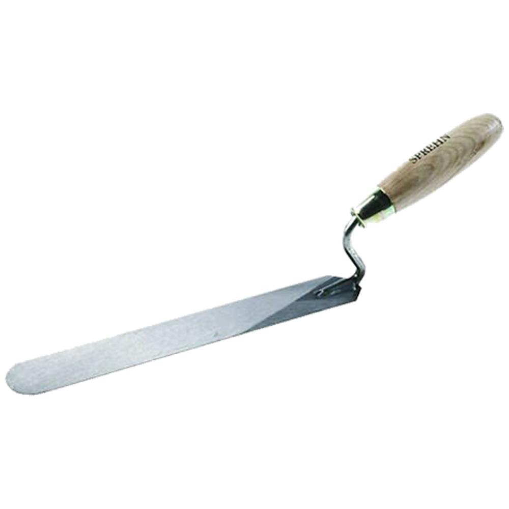 Understrygeske til brug ved understrygning og renovering af tegltag. Udført i fjerderstål med ergonomisk vinklet og glatpudset træhåndtag.