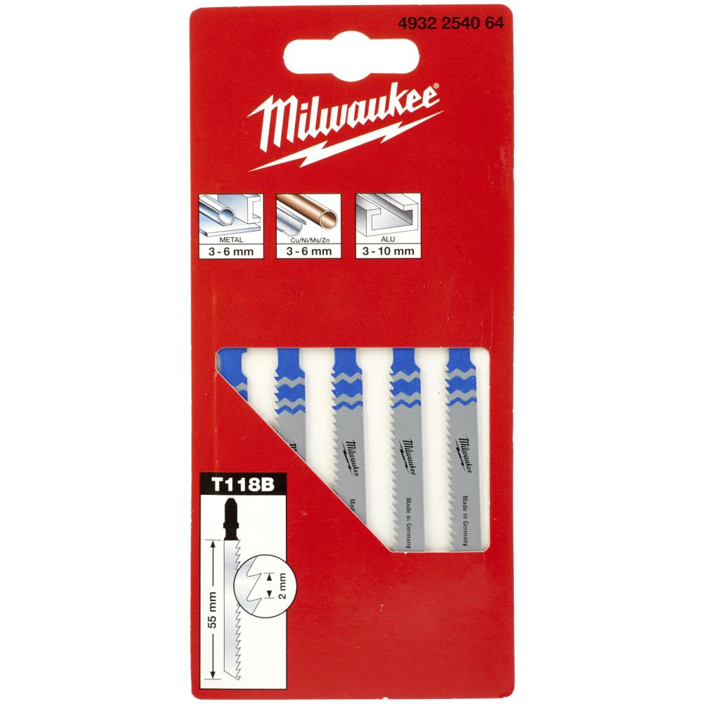 Traditionel stiksavsklinge i højhastighedsstål til skæring i metal, ikke-jernholdigt metal og aluminium. Design med T-fæste, som passer til de fleste kendte mærker foruden Milwaukee f.eks. AEG, Bosch, DeWalt, Festool, Hitachi, Hilti, Mafell, Metabo, Ryobi.