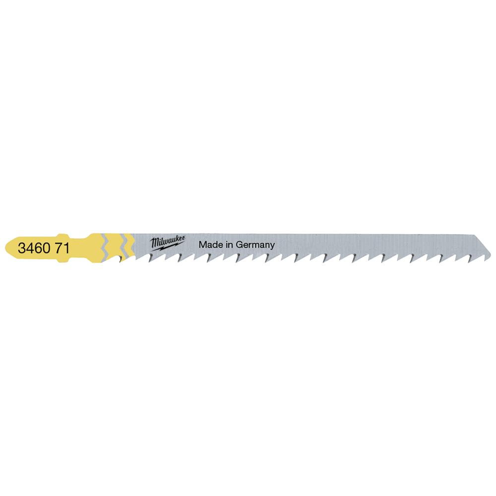 Stiksavsklinge i stål med højt kulstofindhold. Design med slebne krydsfortandede tænder til ren og splintfri savning i træ og plastik samt T-fæste, som passer til de fleste kendte mærker foruden Milwaukee f.eks. AEG, Bosch, DeWalt, Festool, Hitachi, Hilti, Mafell, Metabo, Ryobi.