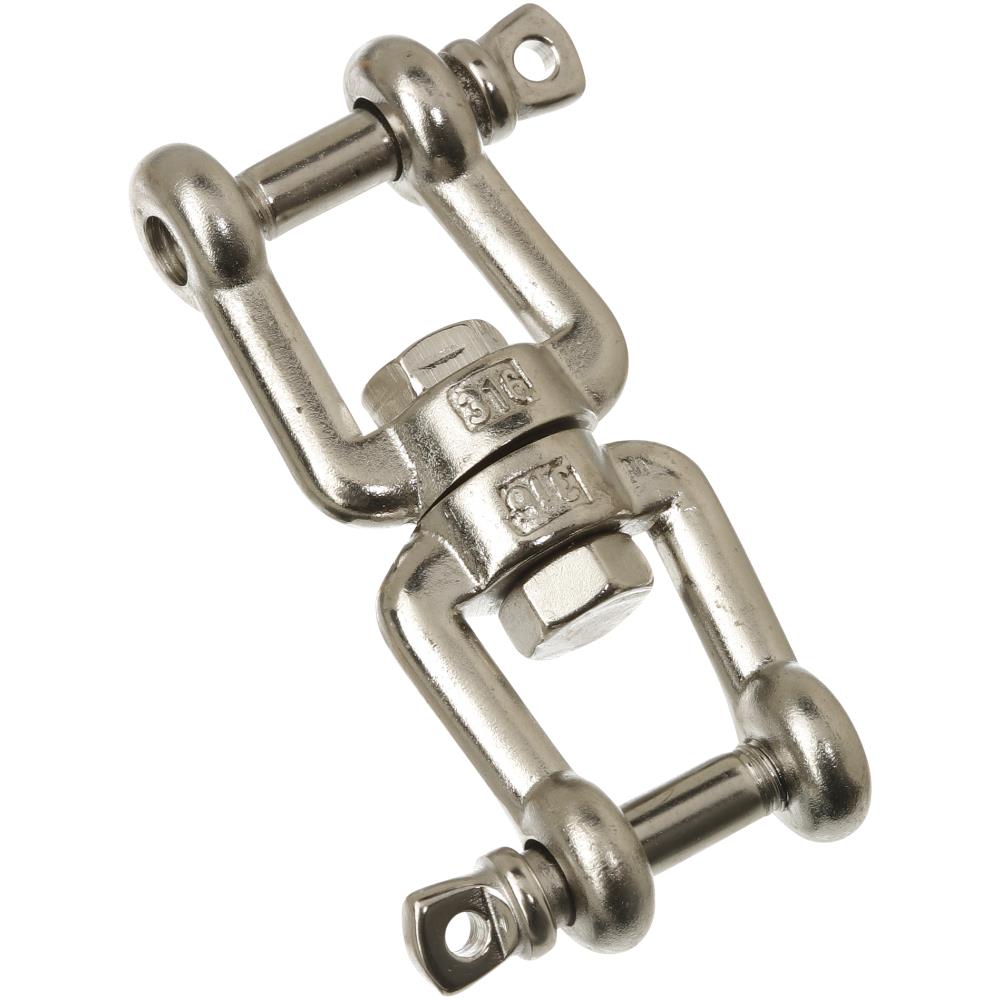 Syrefast, AISI 316 svirvel med to gafler (gaffel/gaffel). Ej til løft. Fås i flere dimensioner.