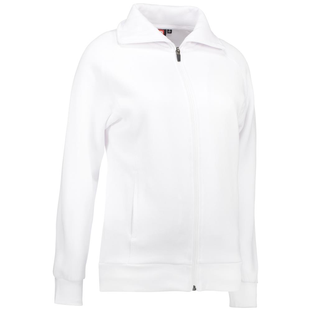 Sweat-cardigan i kraftig kvalitet. Model er let figursyet, har gennemgående lynlås, to stiklommer og raglan ærmer. Nakkebånd, rib ved ærme og bund, og smarte flatlockstikninger. Blød, børstet inderside. Oeko-Tex. Fås i flere farver og størrelser.