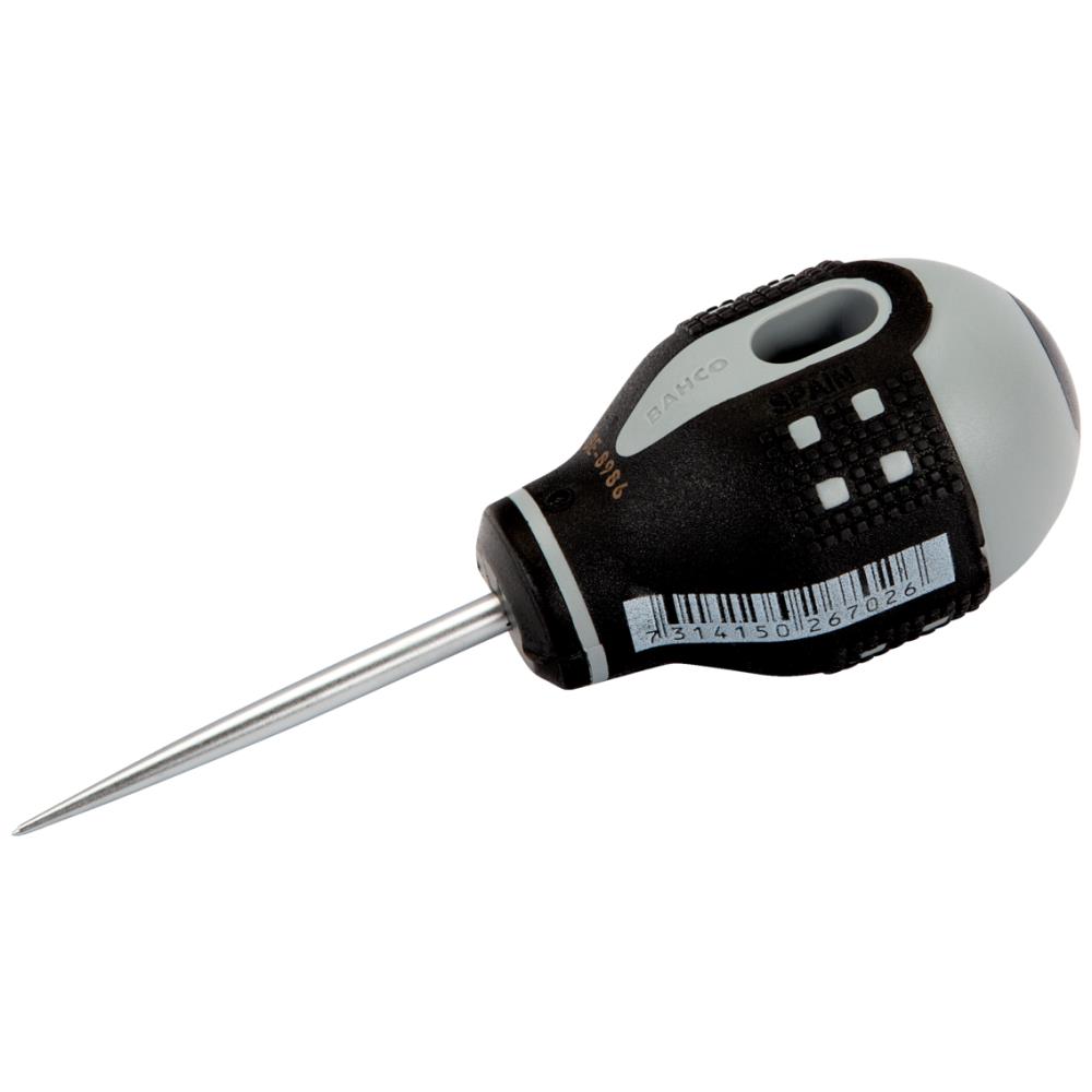 Ergo syl med rund spids til markering af huller m.m. Stubby-gummigreb til arbejde, hvor pladsen er trang. 3-komponent håndtag for maksimal brugerkomfort, blødt materiale med nubret overflade giver et godt greb og højere vridmoment. Nemt at vælge den rette spids med det farvekodede skaft. Facetslebet hoved, som forhindrer rulning. Integreret ophængshul. Forkromet kvalitetsstålklinge for høj beskyttelse mod rustdannelse og lang levetid.