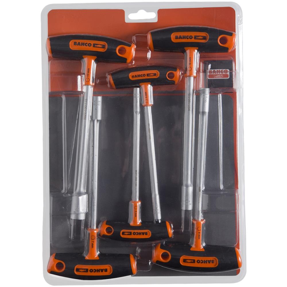 T-nøglesæt med toppe, 6 dele. Leveres i plast forpakning med ophængshul.
