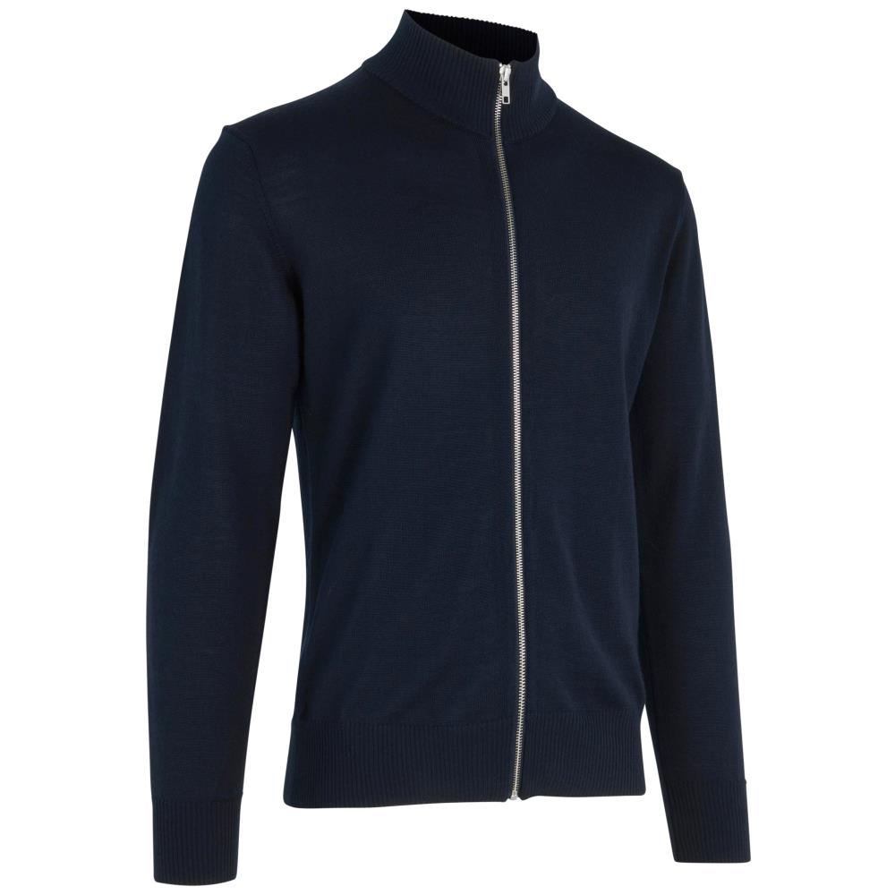 Elegant strikcardigan med lynlås og høj krave i en lækker, blød merino uld. Smarte detaljer ved hals og skulder, som givet et tidløst udtryk. Perfekt til både arbejde og fritid. Skal maskinvaskes på uldprogram, trækkes let i facon efter vask. Oeko tex standard 100. Fås i flere størrelser.