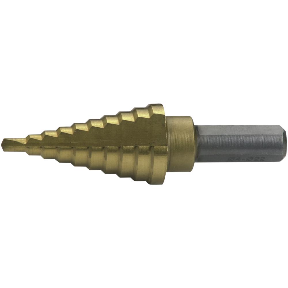 Trinbor til boring af huller i tynde metalplader. Titanium-nitrid-belægning (TIN) med en hærdet overflade – holder op til fem gange længere end traditionelle trinbor. Med selvcentrerende spids. Selvsmørende, når det kører tørt. Fås i flere varianter.