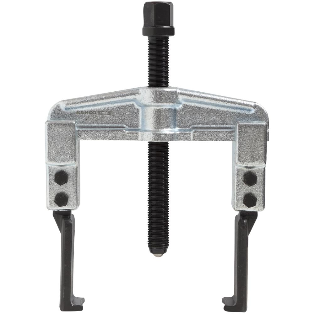 Toarmet universal-aftrækker med vendbare arme for såvel ud- som indvendig brug. Design med meget smal krop og nedfræsede og spidsede aftrækkerfødder, som sikrer et stort anvendelsesområde. Aftrækkerfødderne har meget flade spidser og griber altid parallelt. Fremstillet af specialstål med forzinket finish. Sænksmedede arme og traverse og brunerede aftrækkerfødder.