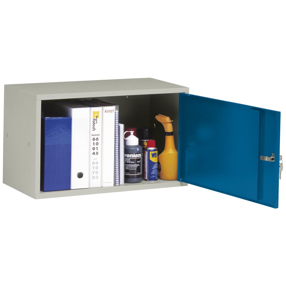 Vægskabet er en mindre pladskrævende opbevaringsløsning, der er nem at placere og som løser mange opbevaringsbehov lige fra værktøjsopbevaring til dokumentopbevaring. Denne model er forberedt til vægmontering og fås i to varianter hhv. med og uden hylde.