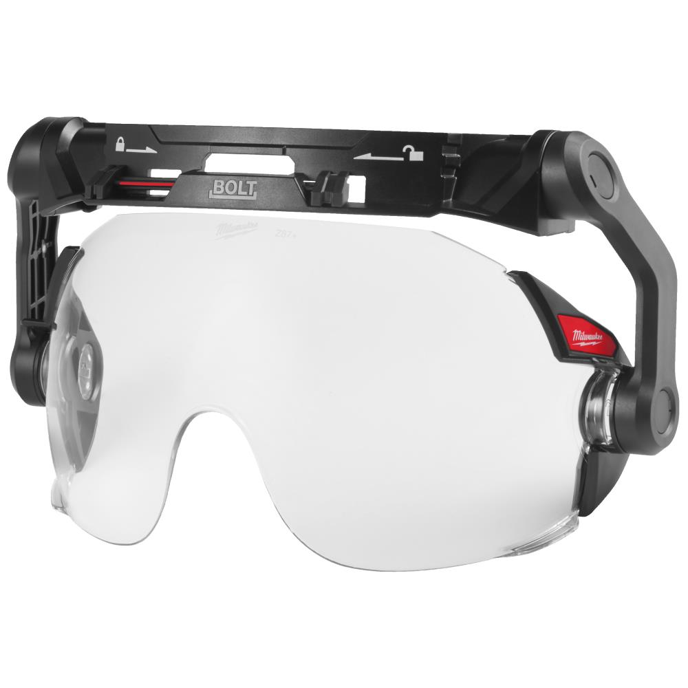 Kort visir med panoramisk synsfelt. Slankt og kompakt design kompatibelt med Bolt 200 sikkerhedshjelm. Linse certificeret med anti-rids K og anti-dug N iht. EN166. 2 linsefarver tilgængelig: klar og grå.
