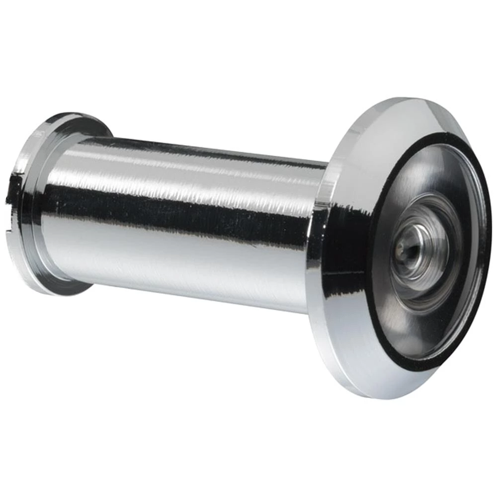 Pålidelig dørspion til indgangsdøre i huse eller lejligheder. Messinghus til døre med en tykkelse på 35 til 59 millimeter. Linsen giver et godt overblik over dit udendørsområde. Vidvinkeloptik på ca. 160°.