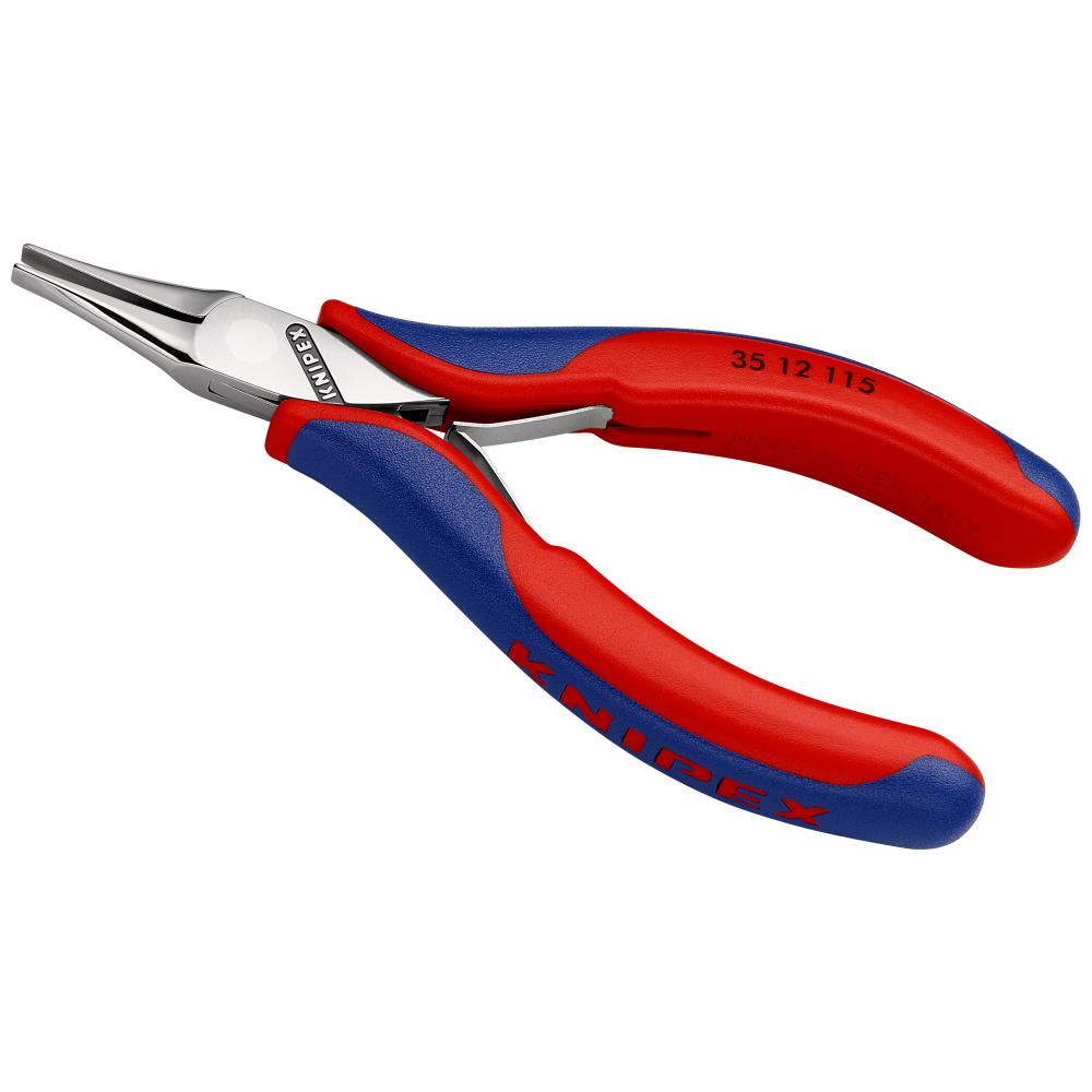 Elektronikgribetang med gennemstukket led. Robust design med afrundet hoved, flade og brede kæber med glat slebne overflader, der ikke beskadiger arbejdsemnet. Slanke håndtag sikrer et behageligt greb. DIN ISO 9655.