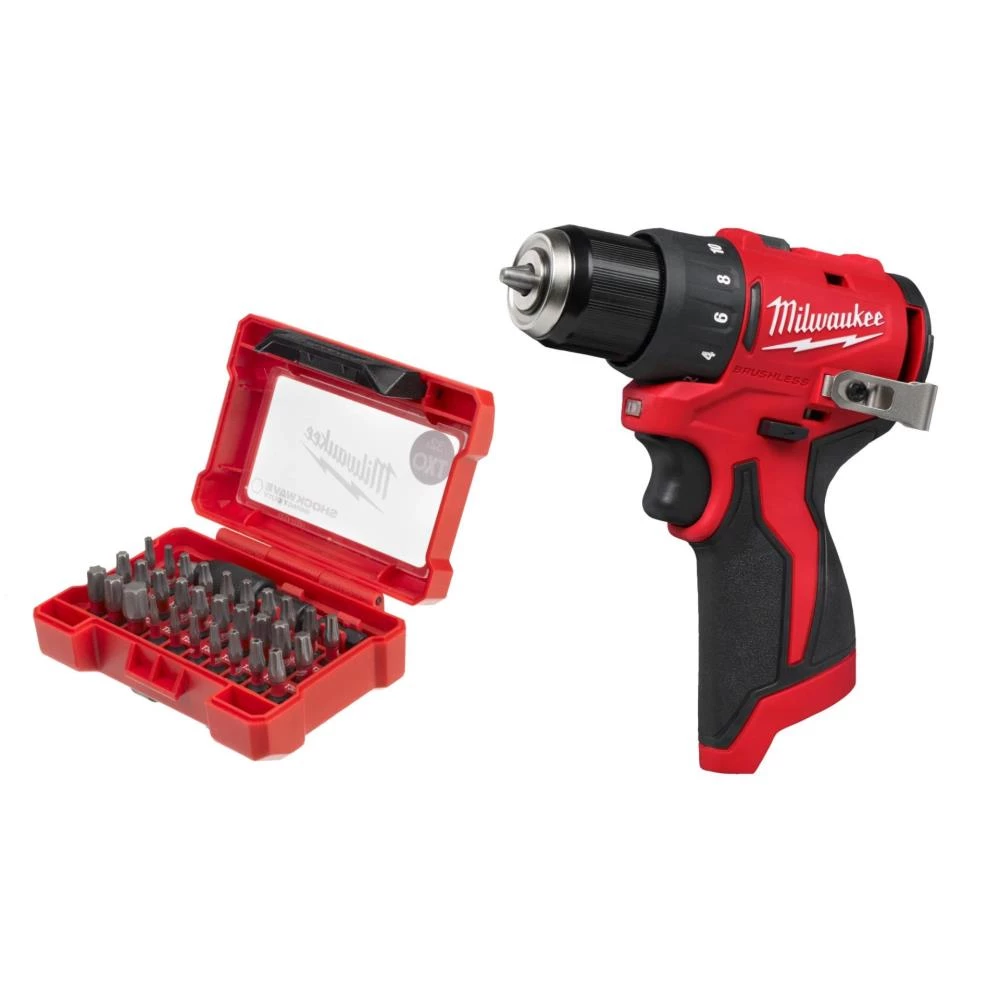 Milwaukee M12 BLDDRC-0 Bore-/skruemaskine + Bits