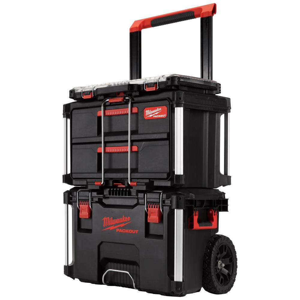 Startsæt med Packout trolleykuffert (4932464078), Packout skuffeboks med to skuffer (4932472129) og Packout lille tilbehørskasse (4932471064).