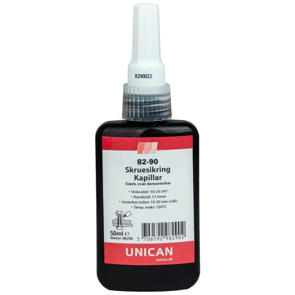 Unican 82-90 skruesikring kapillar stærk 50ml er en gevindsikringslim.
