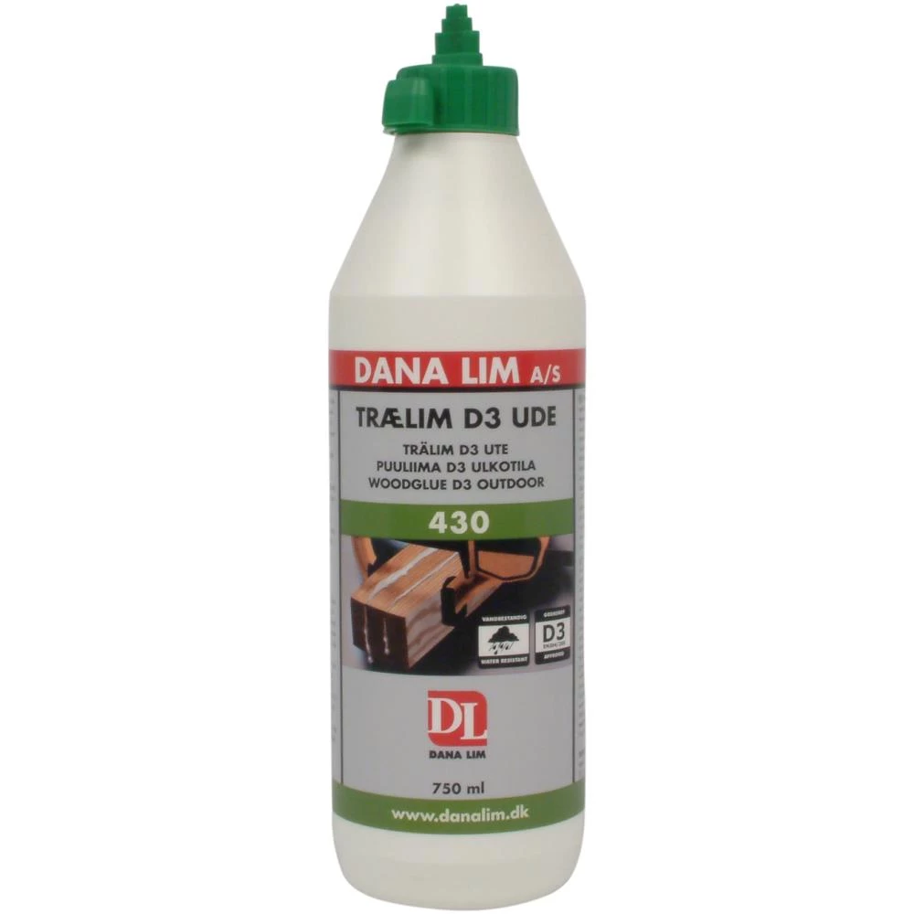 Trælim D3 Ude 430 er en stærk 1-komponent fugtbestandig lim, der opfylder kravene til klasse D3, iht. EN204/205. Limen anvendes hvor der kræves høj fugtbestandighed, fx. til laminering af møbeltræ, køkkenborde samt til samling af karmtræ, møbler til vådrum m.m. Trælim D3 Ude 430 er endvidere velegnet til kantlimning og finering. Kan anvendes til kold- og varmpresser samt højfrekvens (HF) limning. Trælim D3 Ude 430 er godkendt til indirekte fødevarekontakt iht. FDA 21CFR175.105. Produktet er registreret i databasen for byggeprodukter, som kan indgå i Svanemærket byggeri.