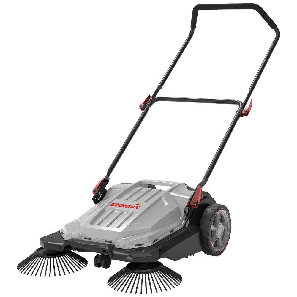 Starsweep fejemaskine er en let og brugervenlig maskine, der er ideel til rengøring af mindre områder. Starsweep er udstyret med to børster, som effektivt fejer støv, snavs og affald ind i en opsamlingsbeholder på 18 liter. Beholderen er nem at fjerne og tømme, hvilket gør det nemt at rydde op efter rengøringen. Fejemaskinen er med remtræk – kræver ingen strøm eller batteri og drives udelukkende af håndkraft. Det betyder, at den kan bruges overalt og er ideel til brug i områder, hvor støj ønskes på et minimum. Fejebredde på 65 cm. Højdejusterbar skubbestang.