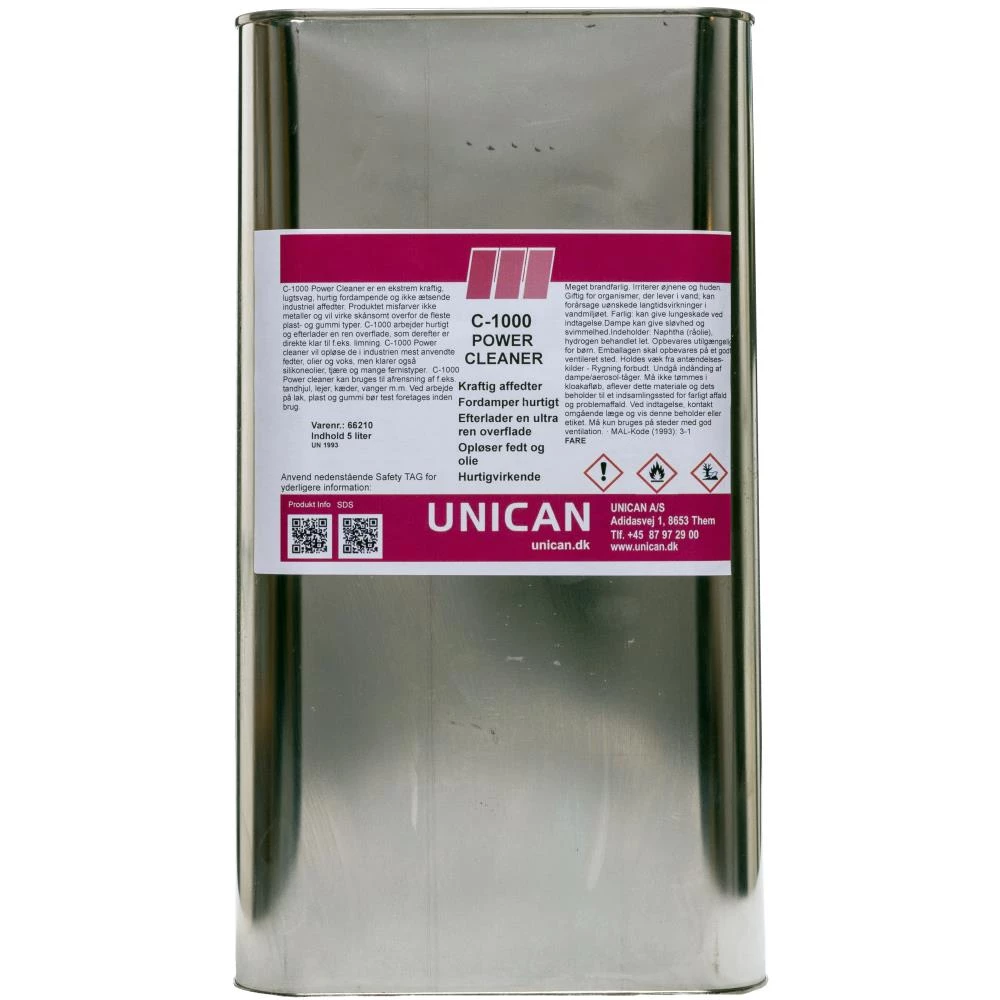C-1000 Power Cleaner er en ekstrem kraftig, lugtsvag, hurtig fordampende og ikke ætsende industriel affedter. Produktet misfarver ikke metaller og vil virke skånsomt overfor de fleste plast- og gummi typer. C-1000 arbejder hurtigt og efterlader en ren overflade, som derefter er direkte klar til f.eks. limning. C-1000 Power Cleaner vil opløse de i industrien mest anvendte fedter, olier og voks, men klarer også silikoneolier, tjære og mange fernistyper. C-1000 Power Cleaner kan bruges til afrensning af f.eks. tandhjul, lejer, kæder, vanger m.m. Ved arbejde på lak, plast og gummi bør test foretages inden brug.