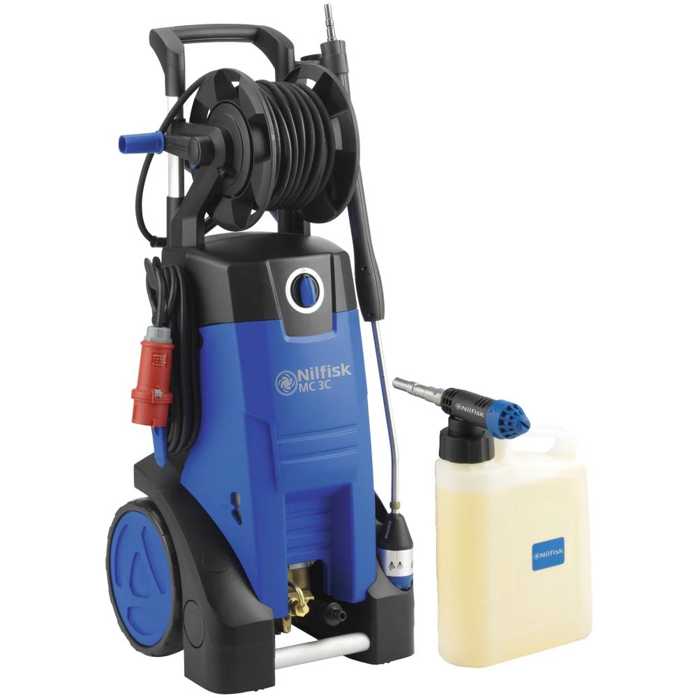 Højtryksrenser MC 3C-170/820 XT. MC 3C er en kompakt, ergonomisk koldtvandsrenser beregnet til rengøringsopgaver med lav intensitet – det ideelle valg til mindre landbrug, byggefirmaer, værksteder, biludlejningsfirmaer m.m. MC 3C er velegnet til almindelig, let rengøring i 1-2 timer dagligt. Koldtvandsrenseren er udstyret med en lang række brugervenlige funktioner: en innovativ holder som er designet til at beskytte spulehåndtaget mod beskadigelse under opbevaring og transport, skumsprayer der effektivt fjerner fedtstoffer, olie og andet genstridigt snavs – skumsprayeren genererer et tykt lag skum, der bliver siddende på overfladen hvilket øger rengøringseffekten – og en drejelig kabelkrog som gør det let at rulle strømkablet af og på. Det servicevenlige system giver brugeren mulighed for at holde øje med olieniveauet og derved beskytte pumpen. Motorpumpeenhed af høj kvalitet med 2.800 omdr./min. Messingtopstykke og stempler af rustfrit stål. Trykstyret omløbsventil. Pumpens olietank har olieskueglas og smart tøm/fyld-funktion. Aftageligt kabinet giver let adgang til pumpen. Innovativ holder beskytter spulehåndtaget mod beskadigelse under opbevaring og transport. Drejelig kabelkrog gør det let at rulle strømkablet af og på. Robust design med 250 mm store hjul optimerer transporten over ujævne underlag og på trapper. Løftestang af aluminium. Inkl. ErgoSystem tilbehør. Fås i flere varianter.