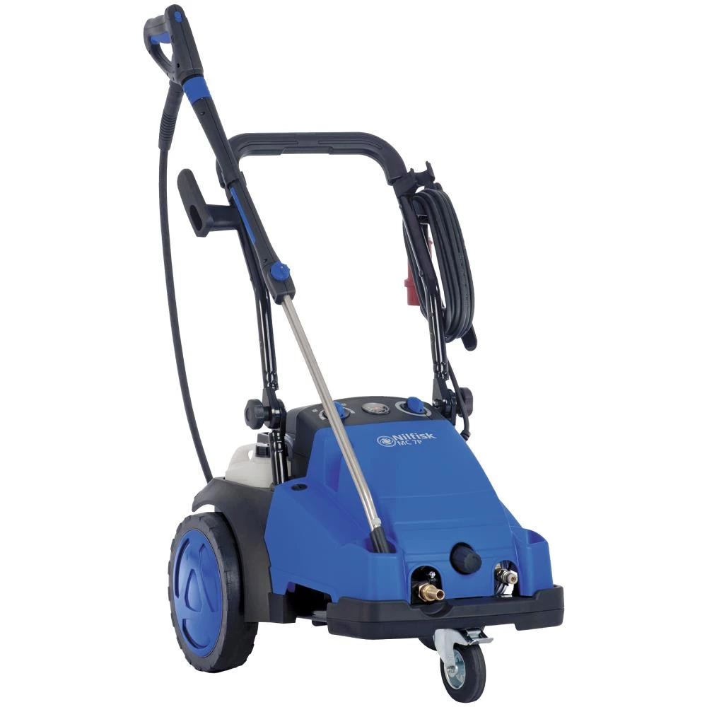 Højtryksrenser MC 7P-195/1280 FA. MC 7P er en robust, pålidelig, ergonomisk og omkostningseffektiv førsteklasses koldtvandsrenser. En koldtvandsrenser til alle typer opgaver indenfor industri, landbrug, shipping, auto/transport og fødevarebranchen. MC 7P er en ægte industrirenser med C3 pumpe med 4 fuldkeramiske stempler, dobbelte rullelejer, og flowstyret omløbsventil, som bidrager til en uovertruffen holdbarhed og pålidelighed. MC 7P kan fødes med 85°C varmt vand og kan endda benyttes med saltvand (kræver dog ekstra vedligeholdelse). SilentPower: 1.450 omdr./min. motor for væsentlig reduktion i støjniveau og øget levetid for pumpe. Nem adgang til pumpe og motor. Vandmængderegulering. Niveau-føler til pumpeolie med sikkerhedsstop. Intern 2-vejs kemiinjektor til to typer rengøringsmiddel med to beholdere. Robust og stabilt design med 30 mm pulverlakeret stålramme. Optimal opbevaring og transport – nedfældeligt håndtag og løftepunkter. Høj mobilitet med store, brede baghjul og drejeligt forhjul med bremse. Inkl. ErgoSystem tilbehør. Fås i flere varianter.