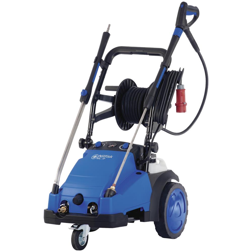Højtryksrenser MC 7P-195/1280 FAXT. MC 7P er en robust, pålidelig, ergonomisk og omkostningseffektiv førsteklasses koldtvandsrenser. En koldtvandsrenser til alle typer opgaver indenfor industri, landbrug, shipping, auto/transport og fødevarebranchen. MC 7P er en ægte industrirenser med C3 pumpe med 4 fuldkeramiske stempler, dobbelte rullelejer, og flowstyret omløbsventil, som bidrager til en uovertruffen holdbarhed og pålidelighed. MC 7P kan fødes med 85°C varmt vand og kan endda benyttes med saltvand (kræver dog ekstra vedligeholdelse). SilentPower: 1.450 omdr./min. motor for væsentlig reduktion i støjniveau og øget levetid for pumpe. Nem adgang til pumpe og motor. Vandmængderegulering. Niveau-føler til pumpeolie med sikkerhedsstop. Intern 2-vejs kemiinjektor til to typer rengøringsmiddel med to beholdere. Robust og stabilt design med 30 mm pulverlakeret stålramme. Optimal opbevaring og transport – nedfældeligt håndtag og løftepunkter. Høj mobilitet med store, brede baghjul og drejeligt forhjul med bremse. Inkl. ErgoSystem tilbehør. Fås i flere varianter.