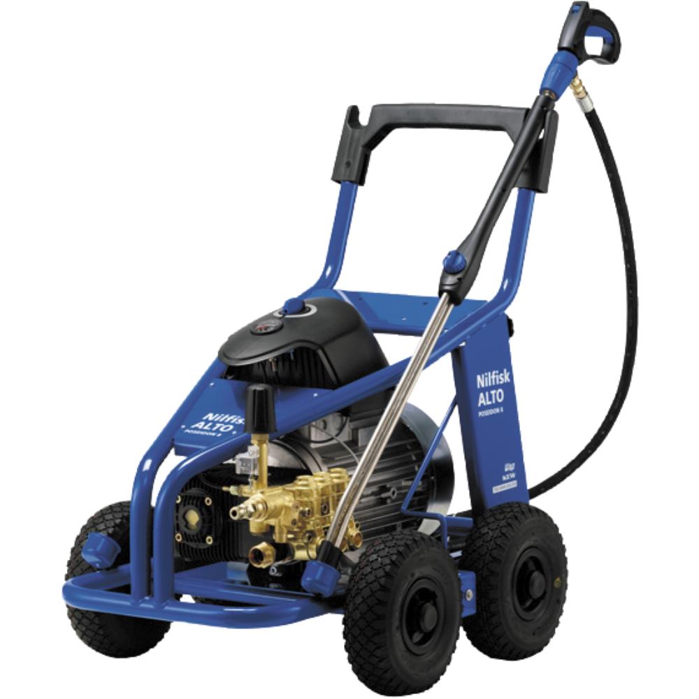 Højtryksrenser MC 8P-160/2500. MC 8P er en koldtvandsrenser i topklasse – den forener højt tryk og stor vandmængde. Ideel til de mest krævende, dagligt tilbagevendende rengøringsopgaver i landbruget, byggebranchen, fødevare- og transportindustrien. En meget brugervenlig renser, der let at klargøre, hurtig at skifte tilbehør på og let at manøvrere rundt med. Med et tryk på 160-180 bar og en vandmængde på op til 2.500 liter i timen, afhængigt af variant, bliver selv det mest indgroede snavs renset af og det løse skidt skyllet væk på ingen tid. Til MC 8P fås desuden ekstraudstyr, så renseren takket være den høje vandmængde kan betjenes samtidig af to brugere. SilentPower: 1.450 omdr./min. motor for væsentlig reduktion i støjniveau og øget levetid for pumpe. Keramiske stempler og messingtopstykke for længere levetid. Automatisk start/stop med forsinkelse for øget holdbarhed. Trykstyret omløbsventil. SoftStart system: Motorens hastighed øges gradvist, hvilket beskytter det elektriske kredsløb. Store luftfyldte kørehjul gør renseren let at manøvrere. Kraftig pulverlakeret stålramme (rustfri på ST variant). Synlig måler af oliestand. Parkeringsbremse. 15 mtr. DN10/DN12 højtryksslange. Inkl. ErgoSystem tilbehør. Fås i flere varianter.