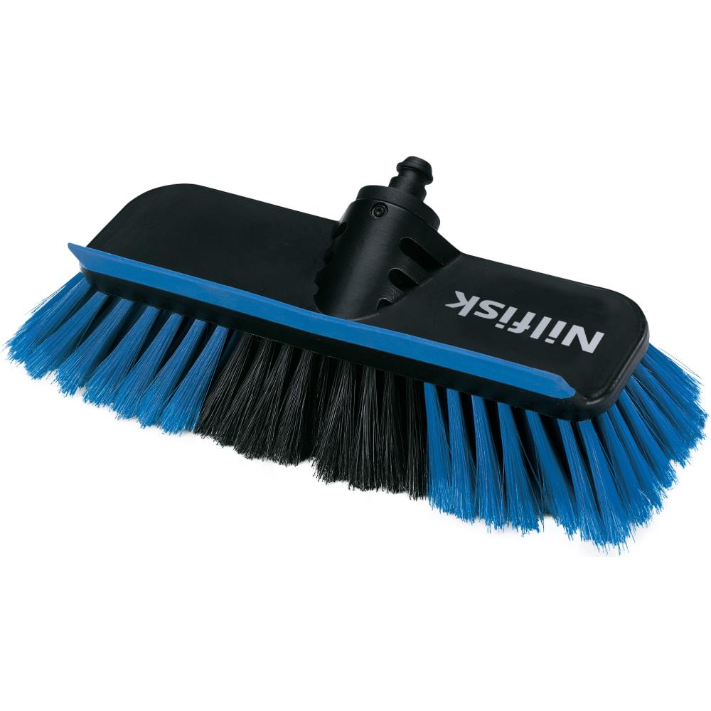 Click&Clean autobørste med drejeled og hår, der er splittet i enderne, samt skraber til fjernelse af vand. Børstens udformning gør det nemt at rengøre på svært tilgængelige steder. Specielt velegnet til bilvask.