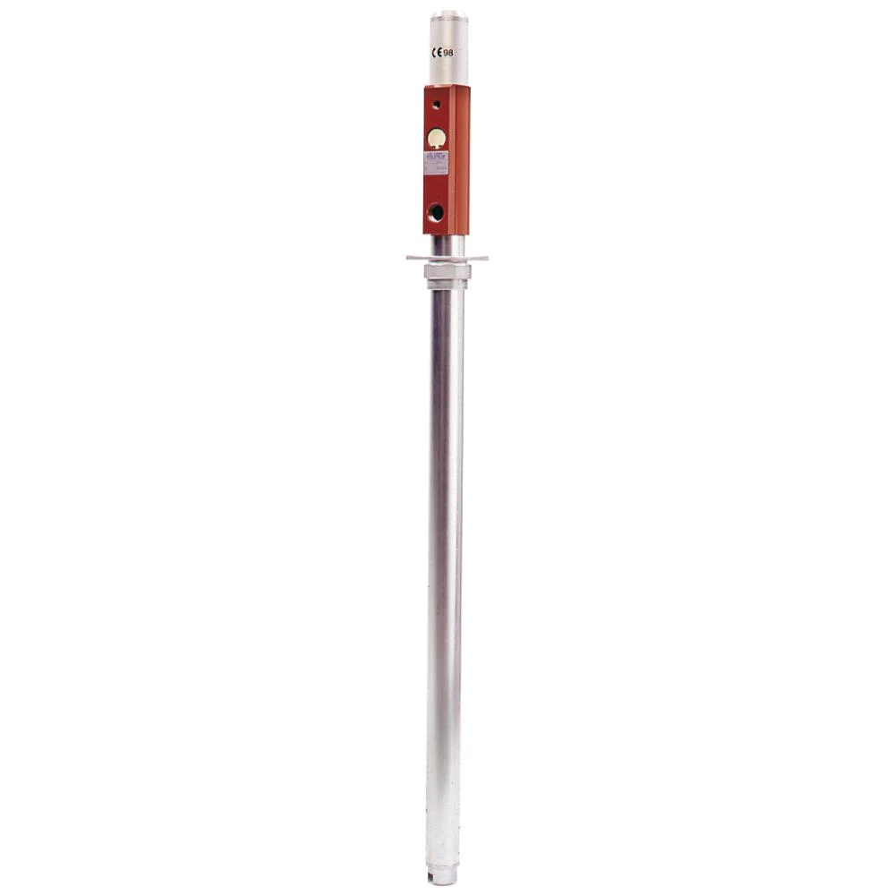 Eurolube trykluftdreven oliepumpe 1:1 for smøreolie op til SAE 90 i rørsystem. For 208 ltr. tromler. Lufttilslutning 1/4″ R. Olieudløb 3/4″ R. Med 2″ fadforskruning. Maks. 10 bar. Arbejdstryk 8 bar. 40 ltr./min (ø50 × 930 mm). Kapaciteten er baseret på fri gennemstrømning.