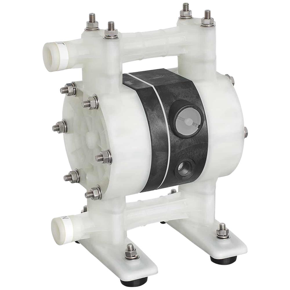 Trykluftdrevet dobbeltvirkende membranpumpe med 1/2″ gevind og med Teflon (PTFE)-membran. Velegnet til AdBlue samt aggressive kemiske applikationer såsom opløsningsmidler. Pumpen er designet til at håndtere en bred vifte af væsker med højt tørstofindhold og mindre partikler. Minimal kontakt med væsken gør pumpen til et glimrende valg for forskydningsfølsomme væsker. Pumpen er selvansugende og tåler tørkørsel i kortere perioder. En indbygget kontraventil giver mulighed for stor sugehøjde, selv ved tør opstart og tungere væsker. Pumpen tåler nedsænkning i væsken. Før blot udløbsslangen op over væskeniveau. Pumpen er designet til brug med et indgangstryk på 2-7 bar (30-100 PSI). Pumpen indeholder ingen lameller, stempler eller gear. Pumpen kan overføre forurenede medier og er ideelle til tømning af kar eller væsker. Pumpen er selvansugende, tåler tørkørsel i kortere perioder og tåler nedsænkning i væsken. Anbefales ikke til brug sammen med petroleumsbaserede medier.