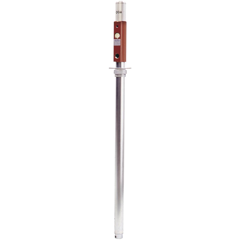 Eurolube trykluftdreven oliepumpe 3:1. For smøreolie op til SAE 90 i rørsystem. For 180-205 ltr. tromler. Lufttilslutning: 1/4″R. Olieudløb: 3/4″R. Med 2″ fadforskruning. Max. 10 bar. Arbejdstryk 8 bar. Kapacitet: 25 ltr./min (ø32 × 915mm). Kapaciteten er baseret på fri gennemstrømning.