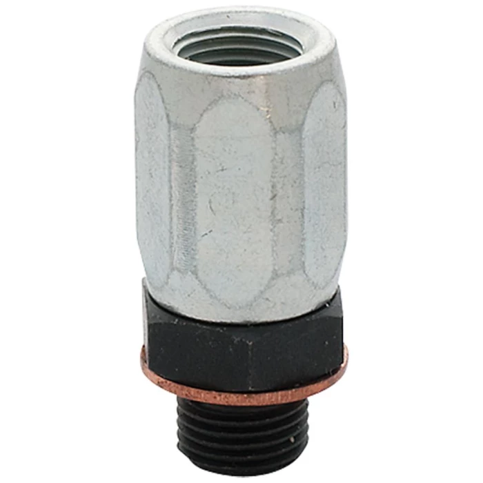 Drejenippel med swivelpakning til brug mellem smøreslange og smørehoved. Maks. tryk 400 bar. Gevind indv. 1/8″ R × udv. 1/8″ R.