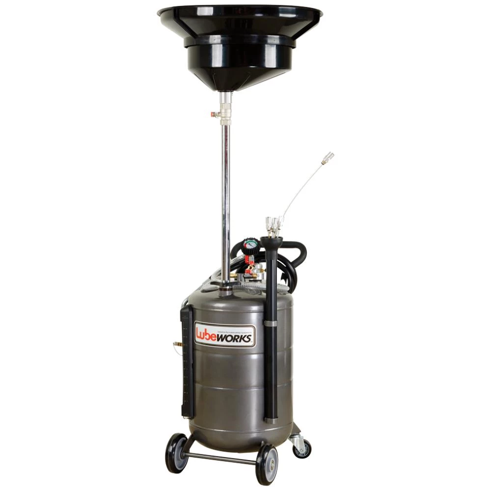 Effektiv og brugervenlig olieopsamler til tømning af spildolie fra motorer, gearkasser og differentialer – velegnet til alle typer køretøjer. Olieopsamleren er udstyret med en centralt monteret og justerbar opsamlingsskål (ø400 mm) med forlængertragt, som gør det nemt at arbejde under køretøjet. Opsamleren kan nemt tilpasses i højden fra 1.250-1.790 mm via det praktiske håndhjul. Vakuumtryk 7-8 bar. Maks. tømningstryk 1 bar. Drænslange 1.600 mm. OBS: Må ikke anvendes til ætsende eller brandfarlige væsker.