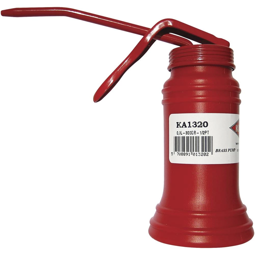 KABI patenteret tryksmørekande med messingpumpe. Beholder: Plast/PE 0,20 ltr. Tud: Stål