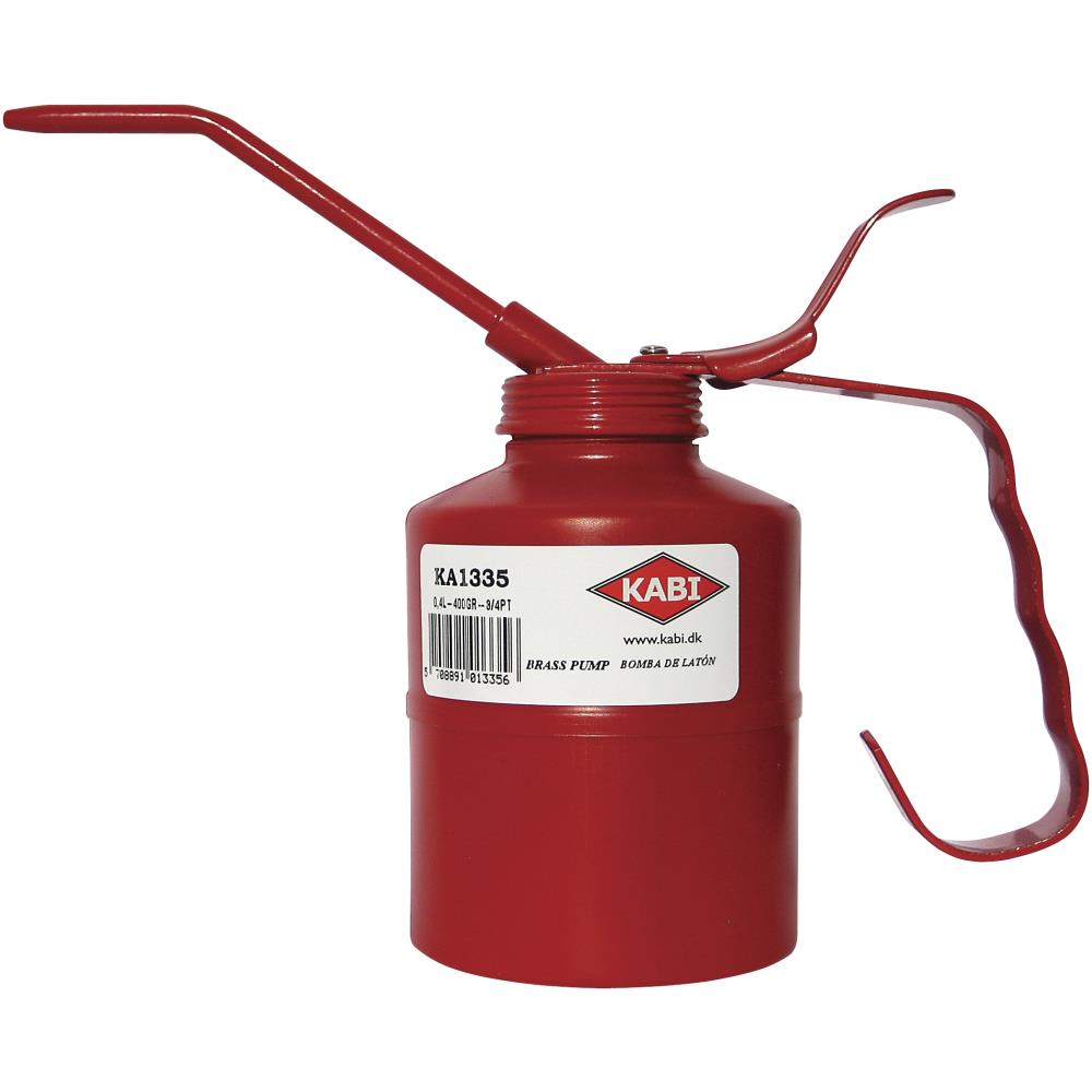 KABI patenteret tryksmørekande med messingpumpe. Beholder: Plast/PE 0,40 ltr. Tud: Stål