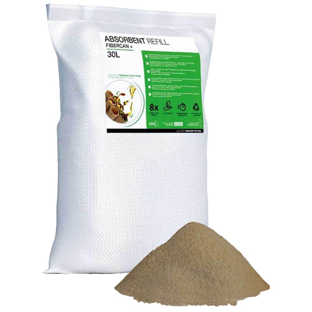 Fibercan+(R) absorbent er et naturligt baseret produkt lavet på micro-cellulosefibre, som omgående indkapsler væske. Den specielle micro-struktur i Fibercan+(R) gør at brugen af absorbent minimeres med 8 gange kontra traditionelle absorbenter. Absorberer alle typer af væsker, og efterlader ingen fedtede overflader. Benyttes sammen med Toucan Pack miljøstation.