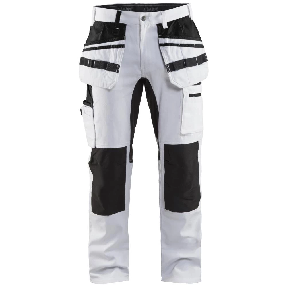 Moderne og komfortable maler bukser med værktøjslommer, udvendige knælommer og stretch zoner på skridt, knæ, bagdel og læg for øget bevægelsesfrihed og komfort. Materialet har fremragende absorberingsegenskaber takket være den høje andel af bomuld. Bukserne har mange funktionelle lommer og en specialdesignet, forstærket lomme til malerværktøj. Malerværktøjslomme og sømlommer er forstærket med Cordura stof og knæene med stretch Cordura for øget komfort. Detaljer om buksen, baglommer, lårlomme specialtilpasset for spartel og børste, lårlomme med læg, lynlås og blyantlomme, indstikslommer, knælommer, sømlommer med værktøjsholdere tilpasset til malerværktøj og indvendig telefonlomme. Fås i flere størrelser.