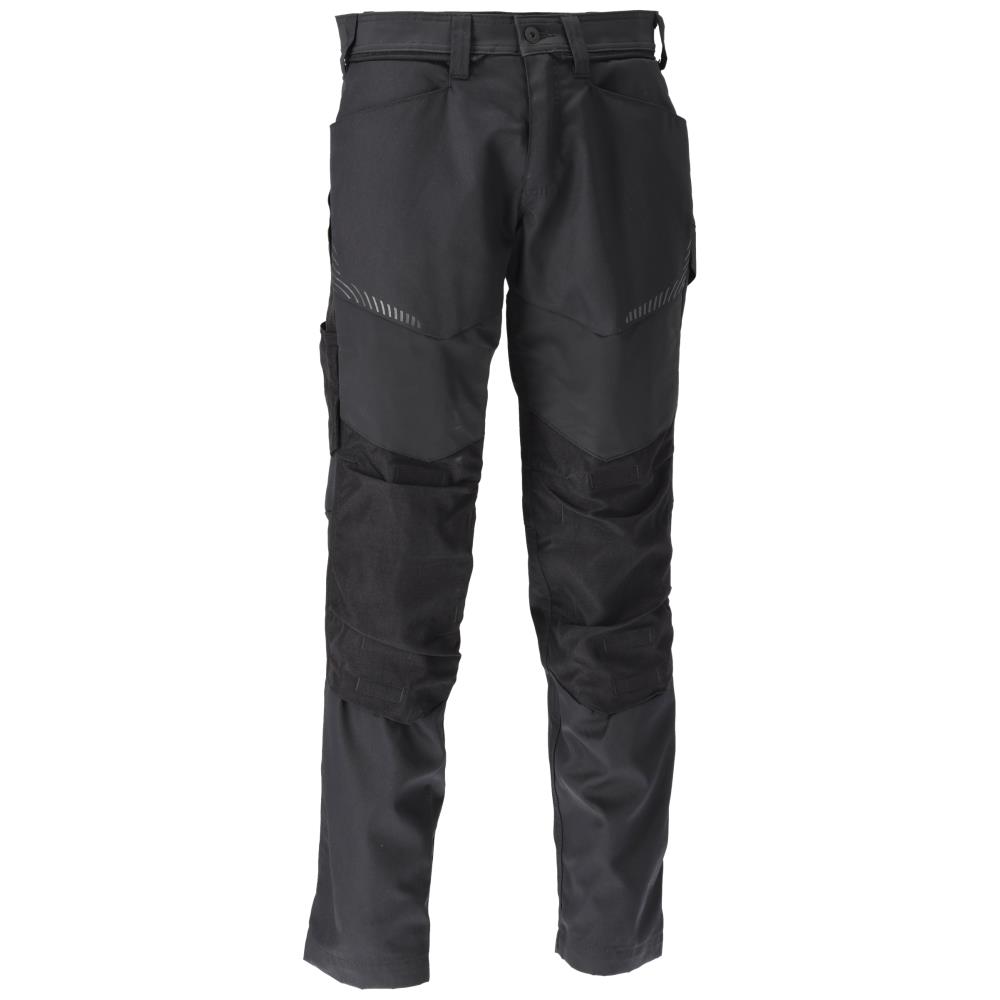 Customized buks med stretch-zoner og knælommer. Buksen er fremstillet i en let kvalitet med tonålssømme og trenålssømme på ben og i skridt. Ergonomisk formede bukseben, bæltestropper, gylp med lynlås, regulerbar hammerstrop og mange funktionelle lommer fx: Corduraforstærket tommestoklomme med lille lomme uden på og lårlomme med klap og magnetlukning. Buksen har desuden regulerbare knælommer i slidstærk Cordura (500 D). Modellen er forberedt til hængelommer med Click Pocket System. Knæpuder 00418-100, 00718-100, 50451-916 og 20118-915 anbefales til denne model. Samcertificeret med knæpudetype Short eller Long iht. EN 14404. Skridtlængden kan forøges med 3 cm ved at fjerne den indvendige, røde syning ved foden. Oeko-Tex Standard 100. Fås i flere farver og størrelser.