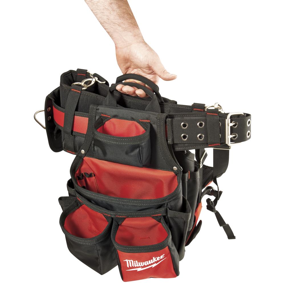 Robust og tyk 4-punkts værktøjssele fremstillet af 1680D ballistisk nylon og med dobbelt syede og nittede sømme. Selen sikrer optimal vægtfordeling og det polstrede og åndbare bælte er komfortabelt at bære. Integreret håndtag gør tasken nem at transportere.