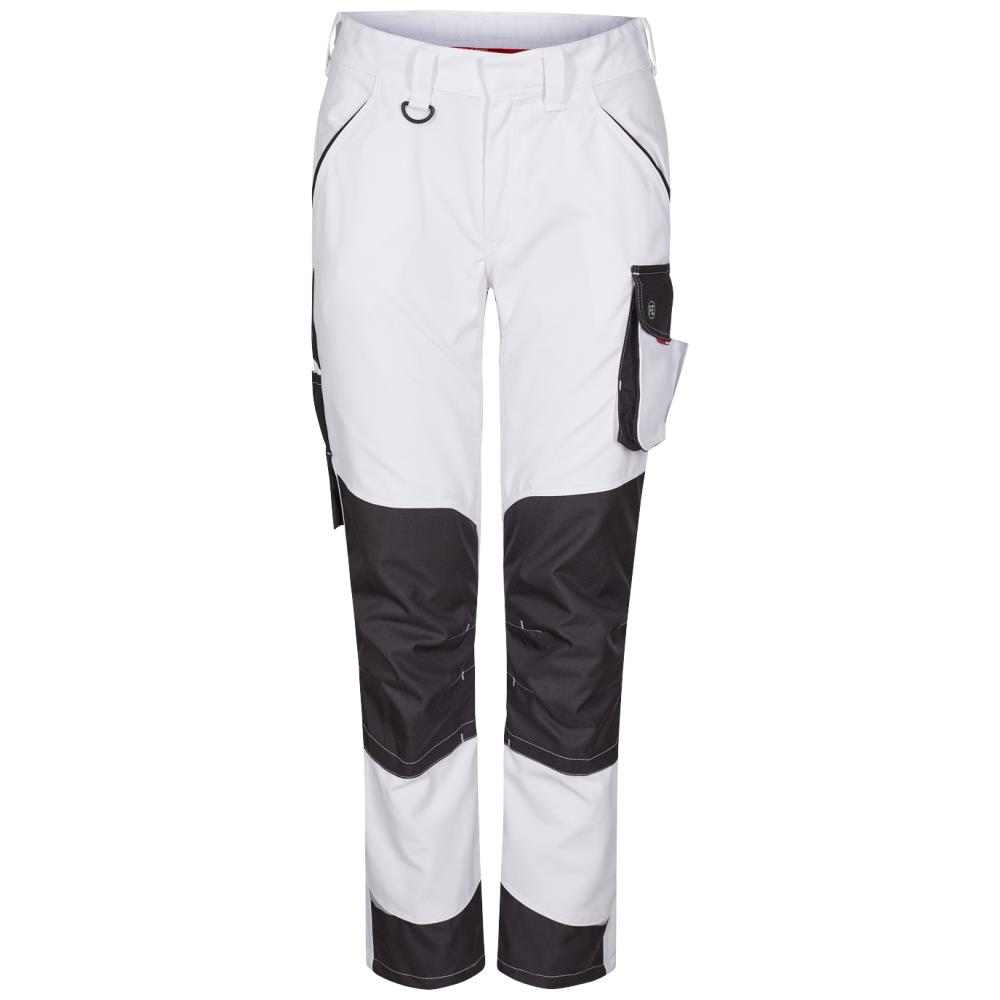Arbejdsbuks designet til kvinder, da pasformen er konstrueret til at tilgodese de kvindelige former. Ergonomisk formet knæparti og panel i indersøm, der giver en behagelig skridtsøm. Elastik i taljen bagpå sikrer god og komfortabel pasform og gør, at buksen bliver, hvor den skal. To rummelige skrålommer foran. Strop med D-ring til fæstning af f.eks. Id-kort foran. To baglommer med klap og velcrolukning. Lårlomme med lynlåslomme til f.eks. mobiltelefon samt ekstra mindre lomme. Lårlommen har box-effekt, hvilket gør den meget rummelig og endvidere har den løsthængende bund for øget bevægelighed. Tommestoklomme med ekstra inddelinger og forstærket bund. Også tommestoklommen har frithængende bund for øget bevægelighed. Knæforstærkning/knælomme med velcrolukning forneden samt to indstillingsmuligheder til knæpude. Forstærkning i bunden af buksebenene både bagpå og foran for ekstra slidstyrke. Reflekser ved knæ bagpå og nederst på buksebenene for øget synlighed. Egnet til industrivask. Oeko Tex. Fås i flere farver og størrelser.