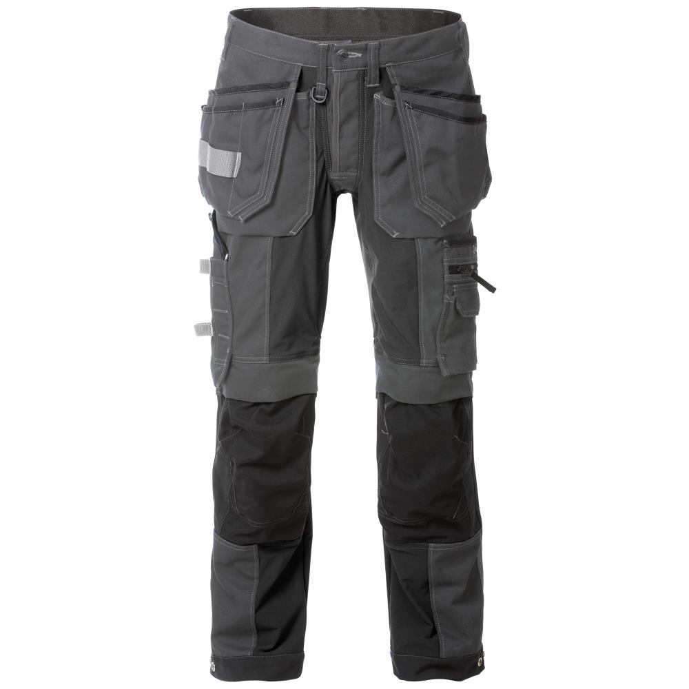 Gen Y håndværker-stretchbuks 2530 i kraftigt, slidstærkt materiale med firevejs stretchpaneler både foran og bagpå og ned langs benene for optimal komfort (stretchmateriale af nylon/elastan). Design med mange funktionelle lommer: to Cordura-forstærkede hængelommer – en med tre mindre lommer og værktøjsstropper, og en med ekstra lomme og værktøjsstropper – to forlommer med bælg, to sidelommer – den ene med lynlås – to Cordura-forstærkede løsthængende baglommer – den ene med klap og velcrolukning – tommestoklomme med værktøjslomme, blyantlomme, knap og strop til knivhylster, multifunktionslomme på låret med mobillomme, ID-kortlomme og vandafvisende lomme med lynlås. Lommerne er forstærket med metalnitter på strækpunkterne. Cordura-forstærkede knælommer med stretch og udvendig åbning ovenfra til højdejusterbare knæpuder. Godkendt iht. EN 14404 sammen med knæpuder 124292. Desuden byder designet på lynlås i gylp, D-ring under hængelommen, dobbelt syning i skridt, hammerstrop, formskårne knæ, Cordura-forstærket ved fod – kan justeres med trykknapper. OEKO-TEX-certificeret. Fås i flere farver og størrelser.