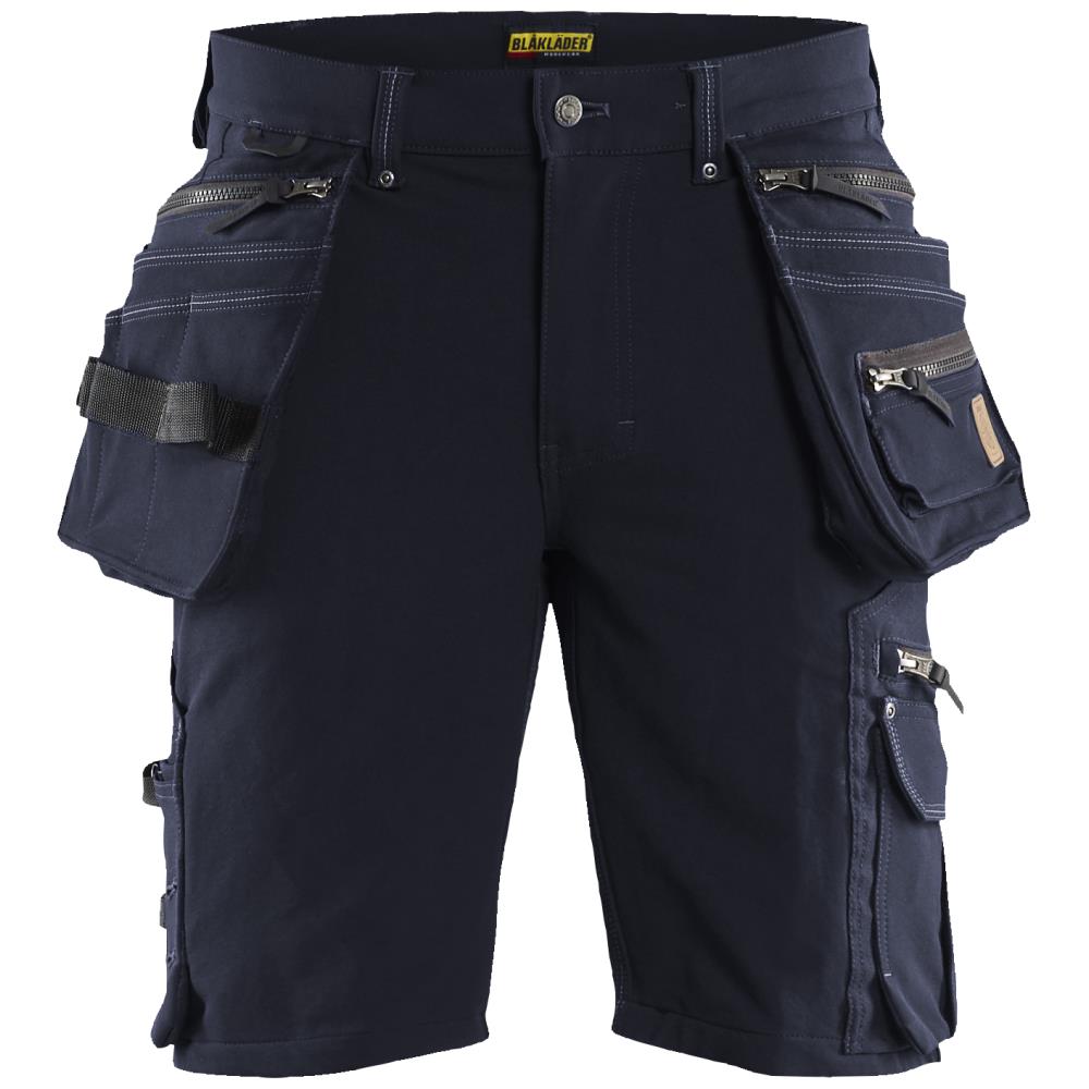 Håndværkershorts i firevejs stretch baseret på Blåkläders 1998 håndværkerbuks. Denne shorts har avancerede detaljer og praktiske lommer med Cordura-forstærkning, en lårlomme med lynlås og læg, en tommestoklomme, sømlommer og funktionelle værktøjsstropper, for eksempel en hammerstrop. Fås i flere farver og størrelser.