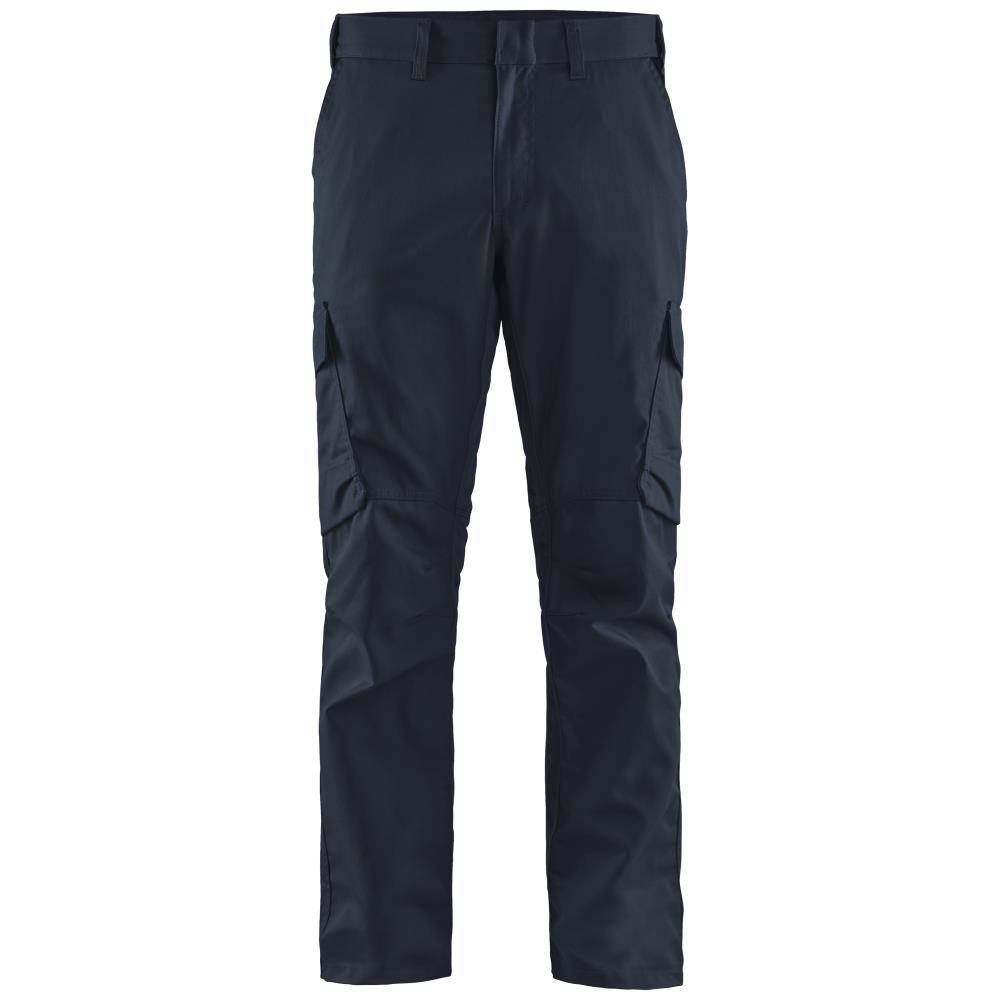 Industribuks med tovejs-stretch og elastisk talje for øget komfort. Ridsefrit design med sikkerhedslomme med lynlås og trykknapper, der gør buksen ideel når der arbejdes i miljøer med følsomme overflader. Modellen har derudover lynlås, trenålssømme på indvendige ben, D-ring og funktionelle lommer: baglommer (en med klap), lårlomme med læg og klap, indstikslomme med skjult lynlåslomme, indvendig telefonlomme, og indvendig tommestoklomme. Industrivask EN ISO 15797. Fås i flere farver og størrelser.